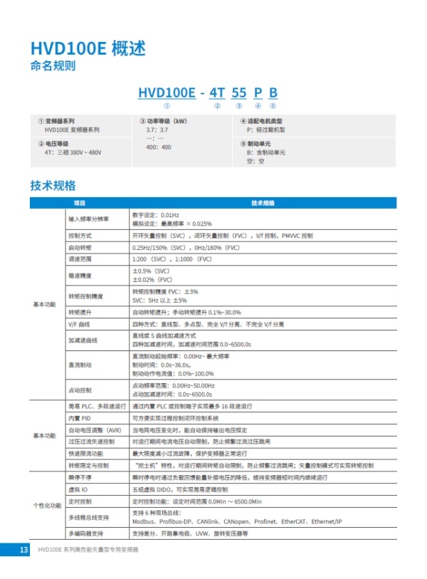 匯川HVD100E系列變頻器適用于永磁電機,異步電機,高性能矢量型變頻器,2路模擬量輸入,2路模擬量輸出